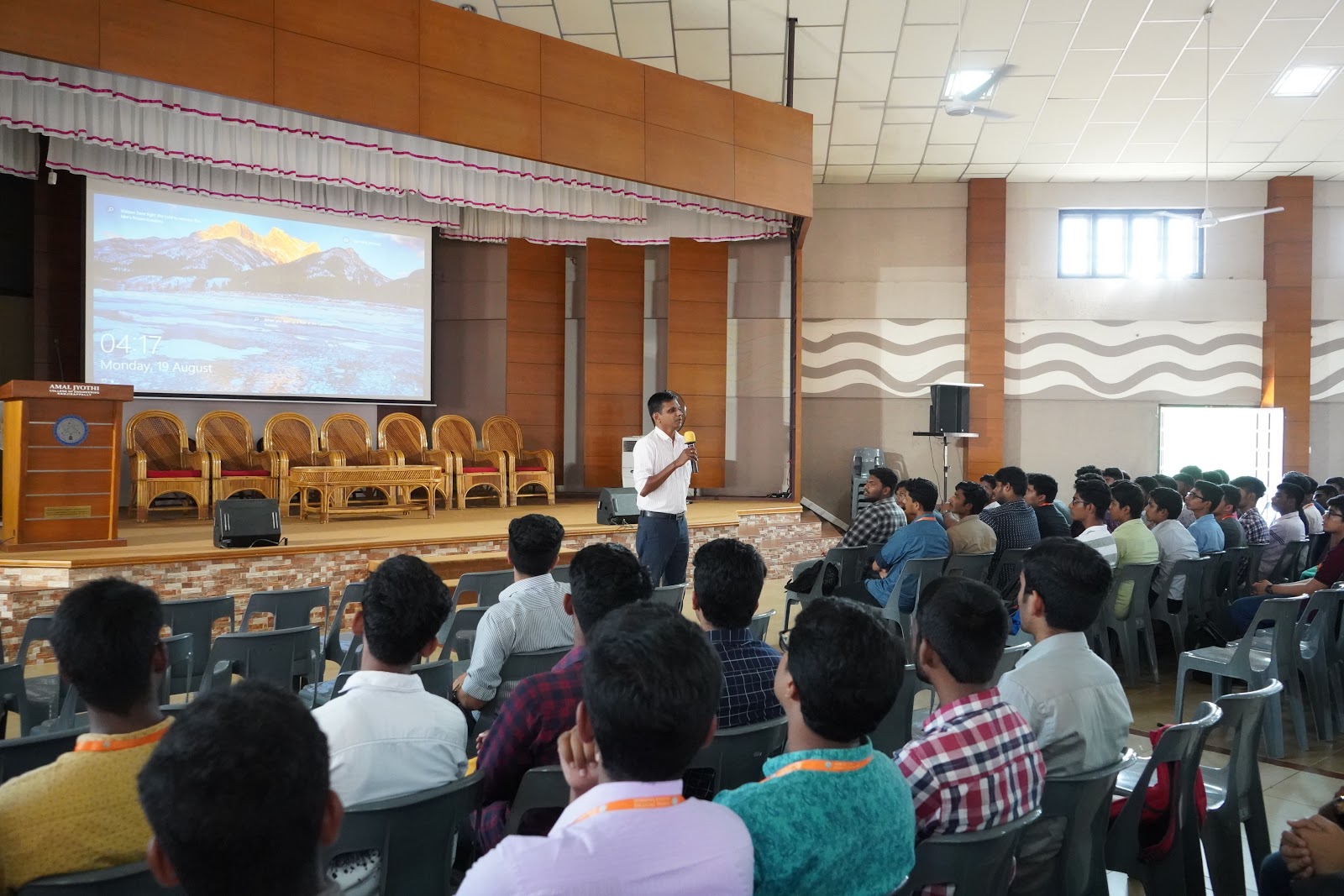 Association of Mechanical Engineering, Amal Jyothi College of Engineering has conducted an appreciation meeting for students who have excelled in technical as well as extra curricular domains during the academic year 2018 – 19 on 19th August 2019. Head of the Department, Prof. Toms Philip addressed the gathering and congratulated the students for their outstanding achievements. Students groups shared their insights on problem formulation, approaches they have adopted for research and sources of project funding that can be applied for the same.